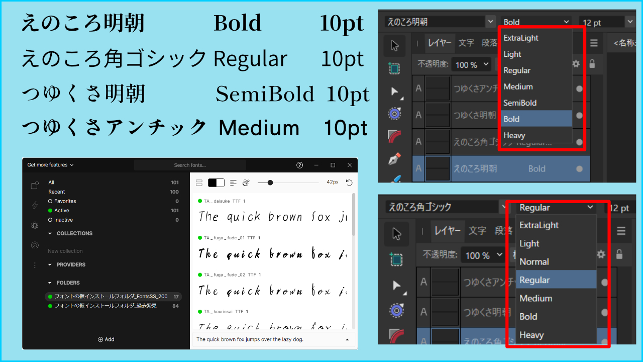 ソフトを立ち上げる前に、【FontBase】を立ち上げる一手間はありますが